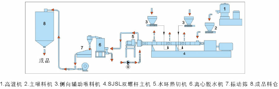 1、EVA、SBS類(lèi)彈性體造粒機:EVA、SBS類(lèi)具有優(yōu)異的回彈性能,廣泛用于各類(lèi)包裝、建筑、工具、密封等產(chǎn)業(yè)中。通過(guò)雙螺桿混煉造粒后更具有各種優(yōu)異的特殊性能,采用水環(huán)模面或水下切粒方式是其理想的選擇。